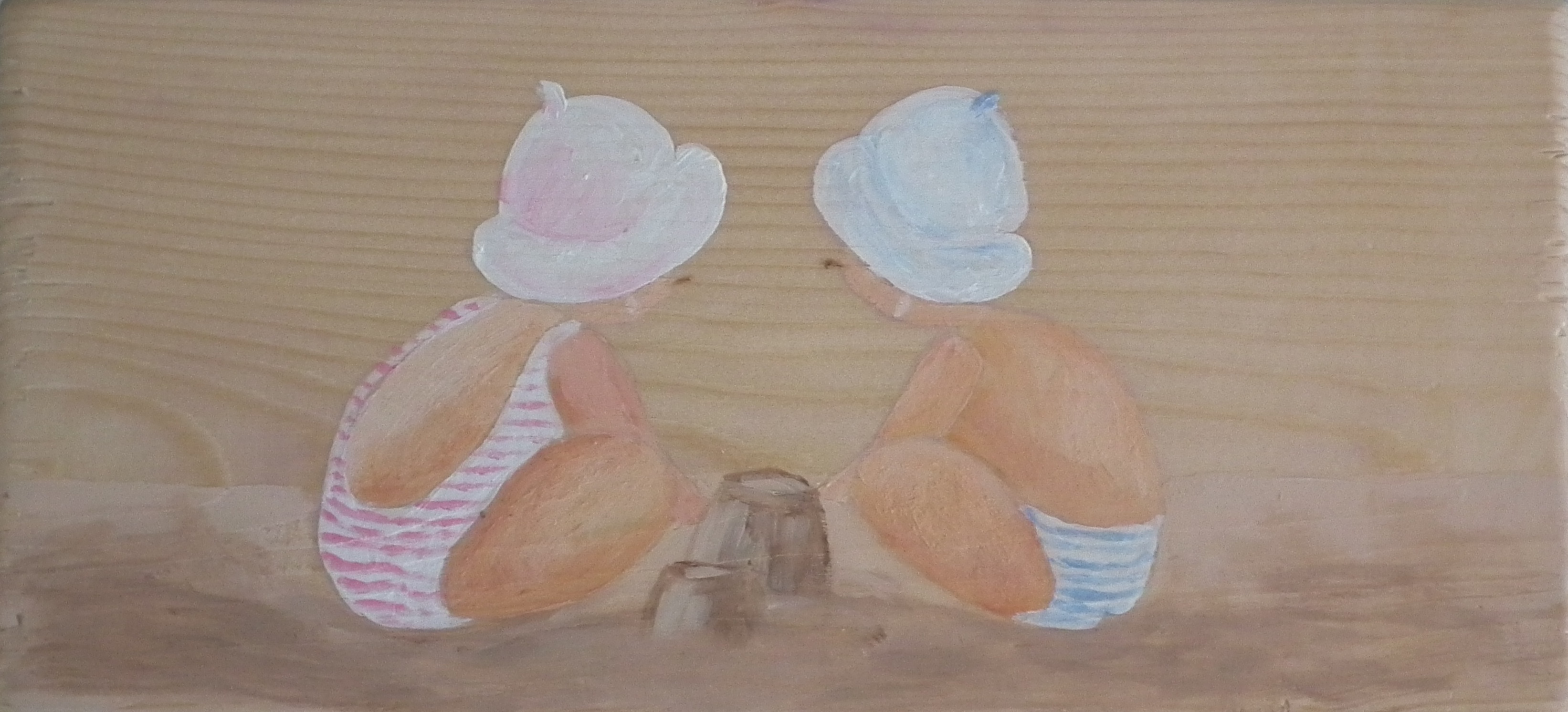 2013-2013plankje met naam van de pasgeborene in de rand van het hoedje.