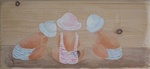 plankje met naam van de pasgeborene in de rand van het hoedje.